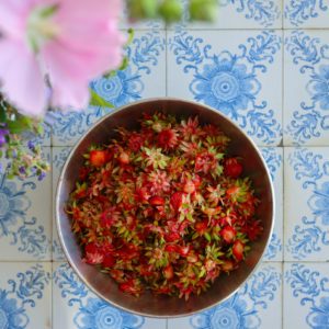 Survo/painele hieman mansikan kantoja samalla kun keität niitä.
