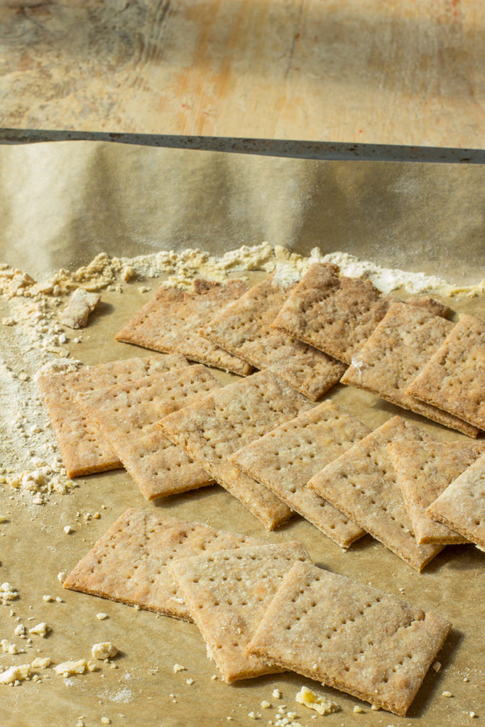Jauhota leivinpaperi. Käytä apunasi vehnäjauhoja ja jauhota myös taikinaa aina välillä kaulinnan lomassa. Kauli taikina ohueksi melkein koko pellin kokoiseksi levyksi. Ota taikinapyörällä haluamasi kokoisia keksejä. Vedä leivinpaperi pellille ja paista noin 14 - 16 minuttia.