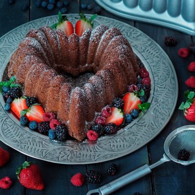 Paista kakkua uunin alimmalla tasolla noin 50 minuuttia 175 asteessa. Varmista kakun kypsyys tikulla.