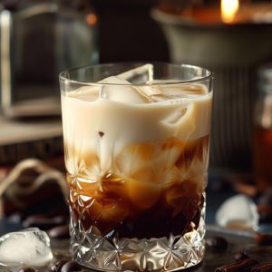Lisää vodka, kahvilikööri ja lopuksi maito tai kevytkerma. Kaada mieluusti maito (tai kevyt kerma) lasiin varovasti lusikan kautta. Älä sekoita.